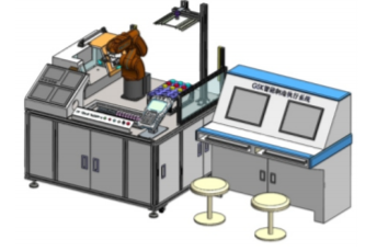 GSK03A2 intelligent manufacturing real training platform consists of six-axis industrial robot unit, numerical control machine tool, intelligent bar magazine, visual detection device and control system, intelligent production line control system and so on. The platform can intelligently identify the randomly placed blank in the bar magazine through color, number, shape, feature and the like, and send the identified position, type and other data to the industrial robot. The industrial robot grips the blank, the intelligent production line control system automatically calls the program in the numerical control machine tool, the blank is machined, and after the processing is finished, the robot returns the finished product to the designated position of the finished product magazine. And the intelligent manufacturing of different quantities of different workpieces can be completed according to the uninterrupted circle function achieved by the proposed program.